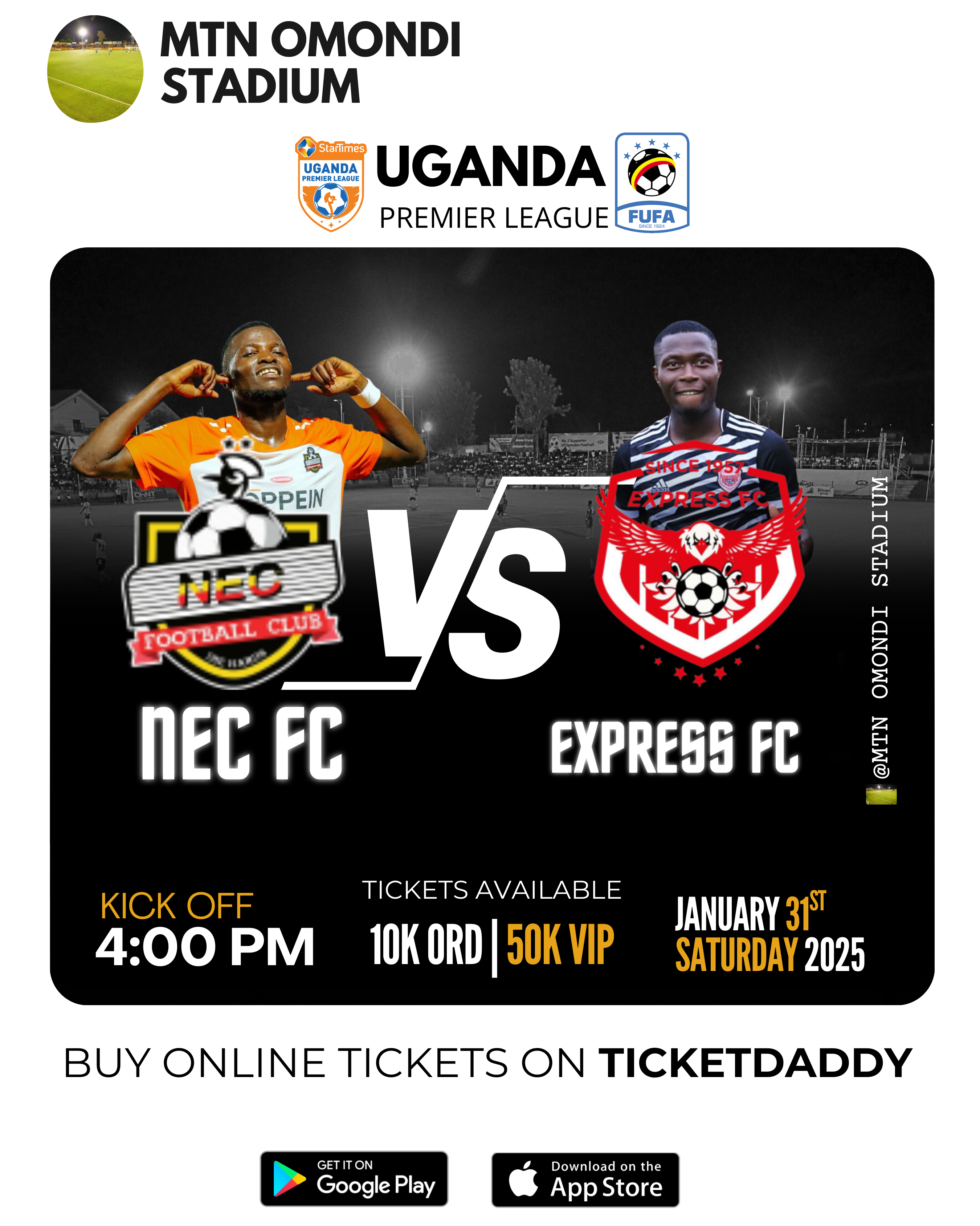 Don't miss the Start Times Uganda Premier League as NEC FC takes on Express FC today at 4:00PM.