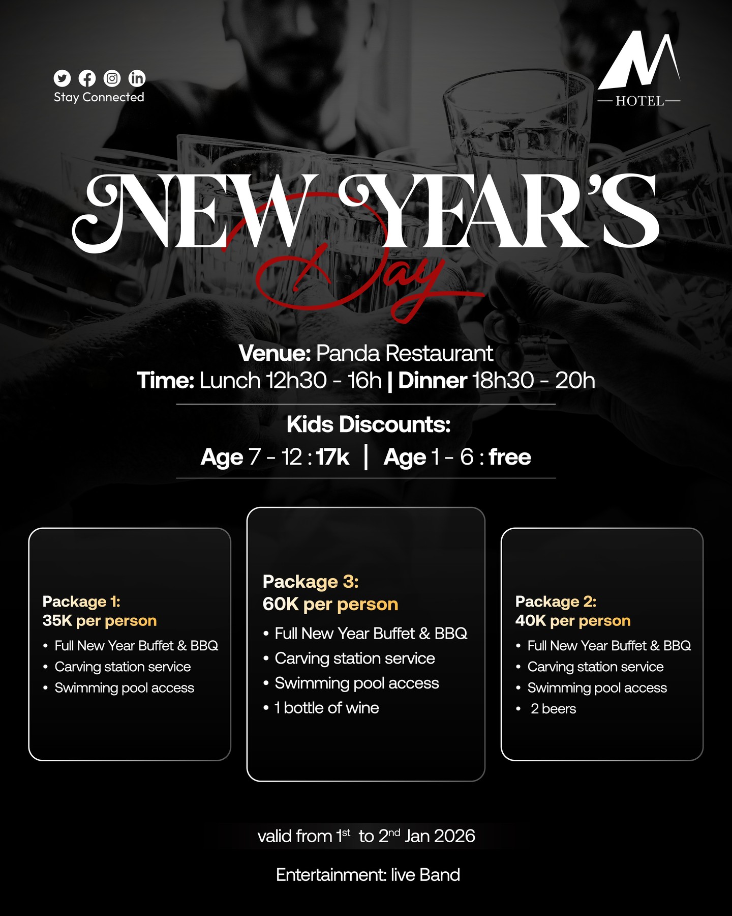 Start the year the right way 🎉🍽️ Full Buffet & BBQ🎶 Live Band🏊 Swimming Pool Access👨👩👧 Kids discounts availablePackages from 35K per person.📍 Panda Restaurant