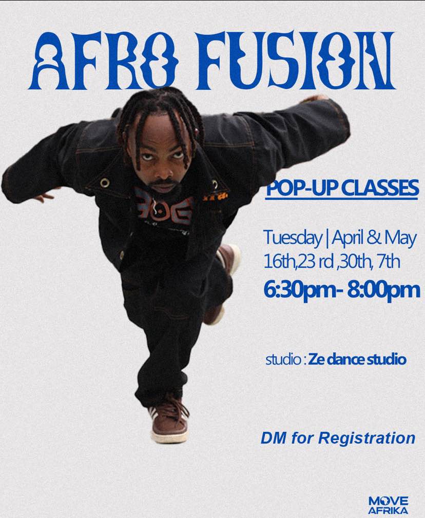 Join us for an unforgettable experience at Afro Fusion | Pop up class 16th | Tuesday .